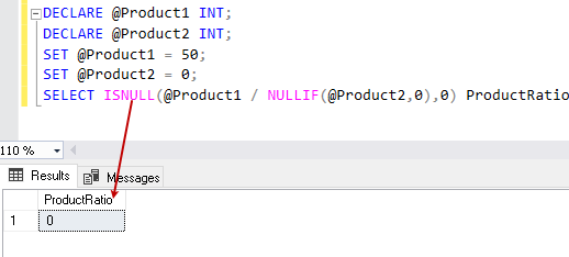 Run following script in sql server management studio window. Select itnbr, amount, quantity, case when quantity <> 0 then amount / quantity else 1 end from sometable the other way to prevent division by zero is to use the nullif. For example, with t as ( select 1 numerator, 0 denominator from dual ) select.